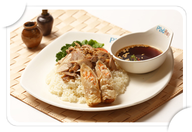 Grilled Chicken & fried spring roll11,000원 그릴에 구운 닭가슴살을 따뜻한 밥 위에 토핑하고 소스를 곁들여 먹는 요리