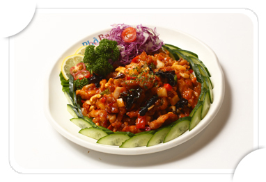 Chilli shrim17,000원 바삭하게 튀긴 닭다리살과 각종 야채와 캐슈넛을 함께 매콤 새콤한 소스로 볶아낸 요리 Set Menu