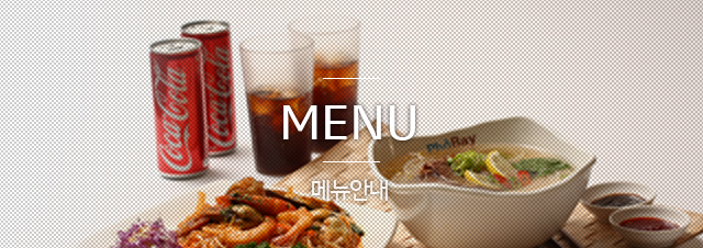 Tom yam soup : Pho with tom yam10,000원 세계 3대 스프 중 하나로 매운맛, 신맛, 짠맛을 도무 가진 톰양쿵을 간편하게 국수로 느낄 수 있는 메뉴